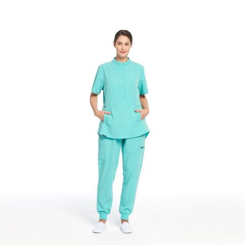 OEM manica corta top Scrub pantaloni Jogger set da donna Scrub Logo personalizzato uniforme per salone di bellezza ospedale